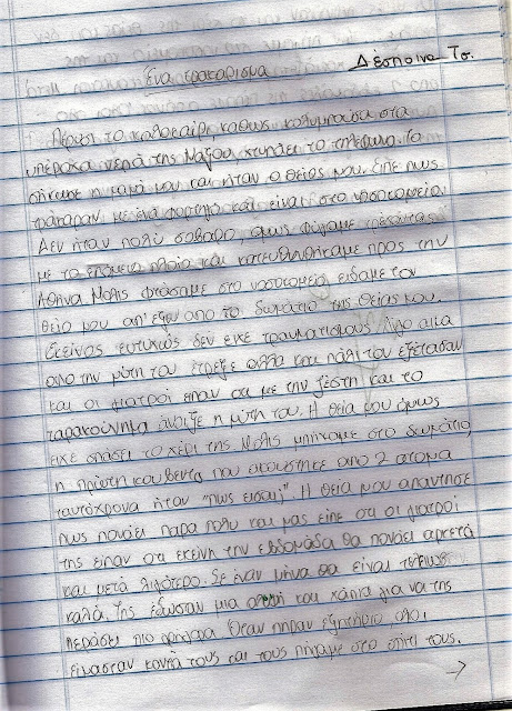 " Χτες ξέχασα να κάνω στα μαθηματικά μια άσκηση για το σχολείο. Ακούστε λοιπόν τι έγινε. Χτες πήγα στο σχολείο μες στη καλή χαρά, νόμιζ...